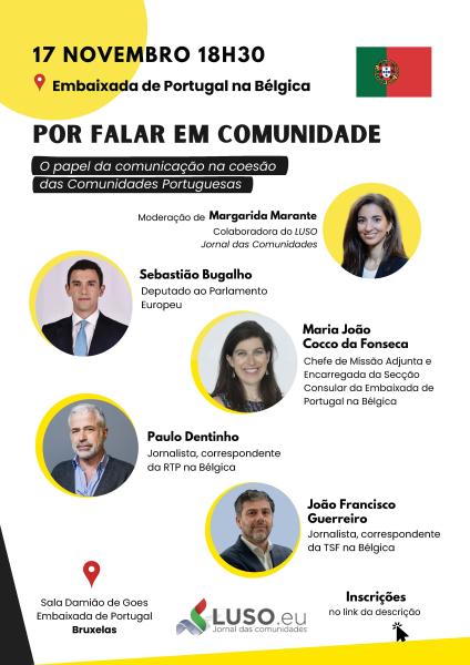 O LUSO – Jornal das Comunidades tem o prazer de convidar V. Ex.ª para o evento “Por Falar em Comunidade – O papel da comunicação na coesão das comunidades portuguesas”, que terá lugar na segunda-feira, 17 de novembro de 2025, às 18h30, na Sala Damião de Goes da Embaixada de Portugal na Bélgica, em Bruxelas.